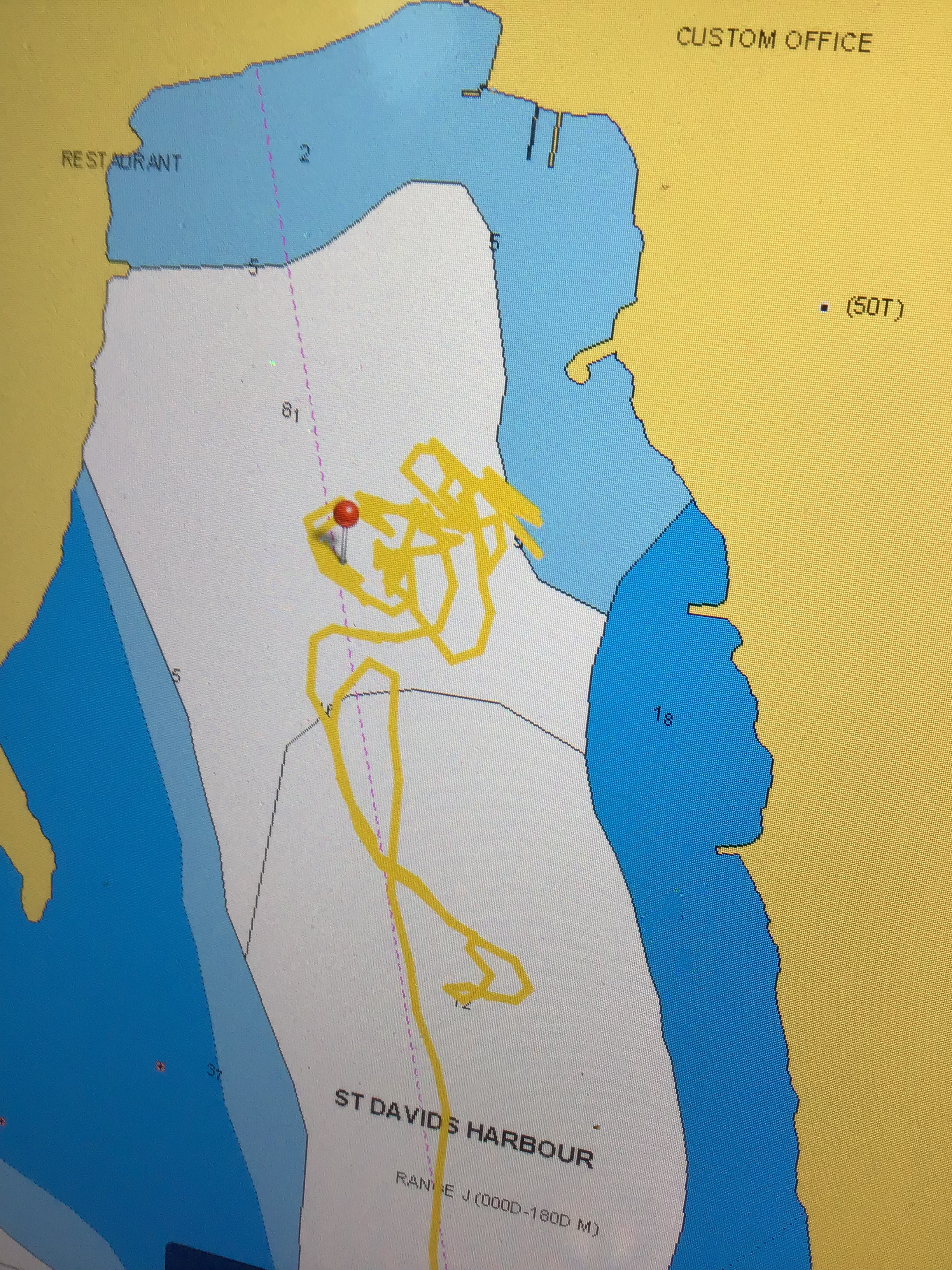Troisième mouillage, une mauvaise combinaison de vent tournant et de courant nous placent dos à la côte, avec la chaîne qui dessine un cercle presque complet depuis l’ancre.