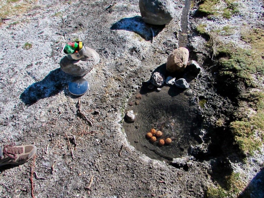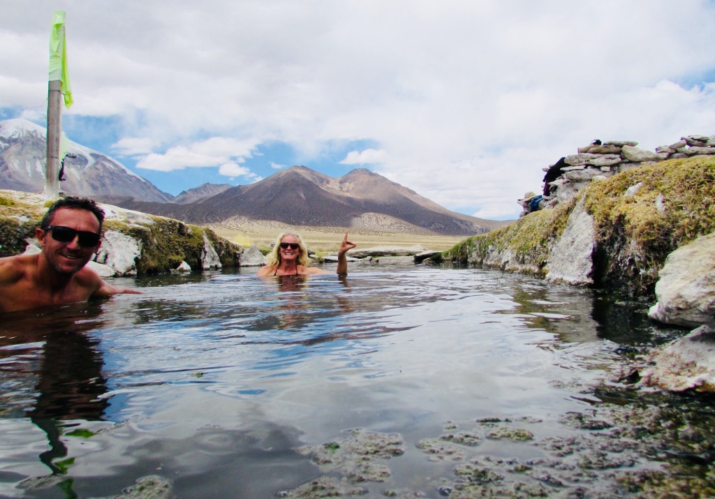 Nous avons marché vers les Lagunas de altura sur la frontière avec le Chili, en passant par les geysers dans lesquels nous avons fait cuire nos œufs durs.