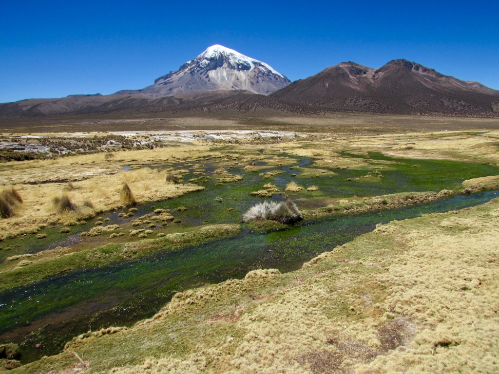 Sajama, une rivière, un volcan, un parc national, un village, tous nommés Sajama. Un petit bout de Bolivie 🇧🇴 à la frontière avec le Chili 🇨🇱, une nature grandiose et sauvage, en altitude comme souvent ici!