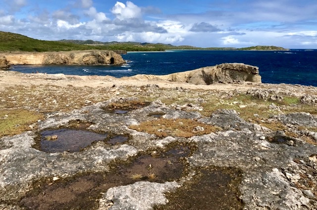 Le sentier continue ensuite en direction de la Table du Diable, petite île inhabitée de la presqu’île de Sainte Anne et belle plage du même nom. Au bout de cette presqu’île, un petit pont en bois donne accès à la Savane des Pétrifications.