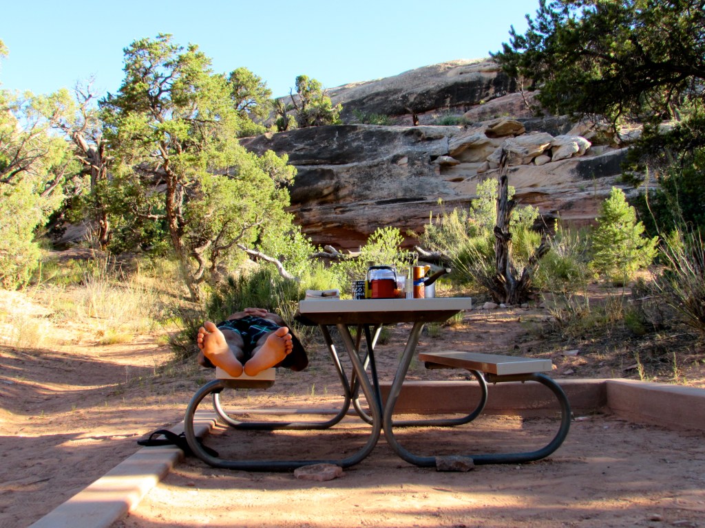 Dans le sud ouest du Colorado, nous arrivons sur ce « Plateau vert »sans trop savoir ce que nous allons y trouver. Nous posons la tente et repartons à la recherche d’information. Rien n’est visible de la route et il faut emprunter des sentiers et descendre des échelles pour accéder aux différents sites.